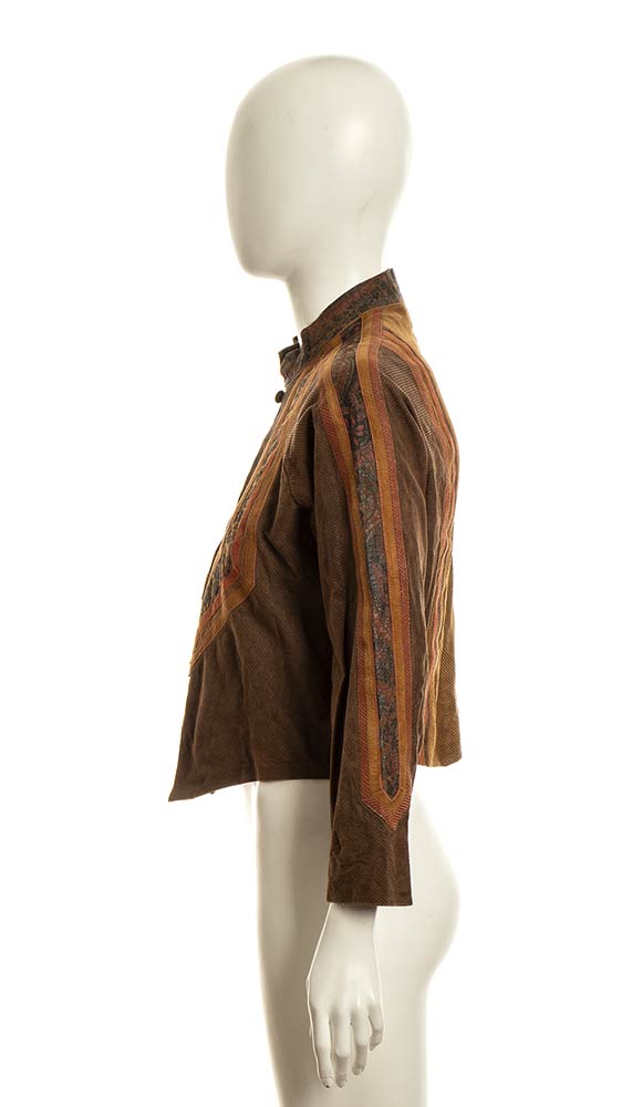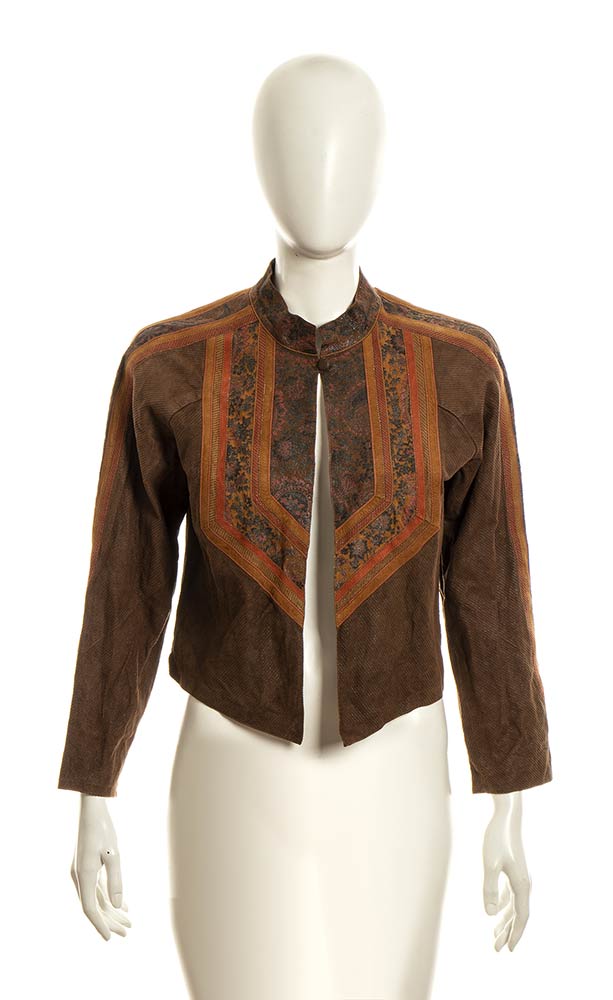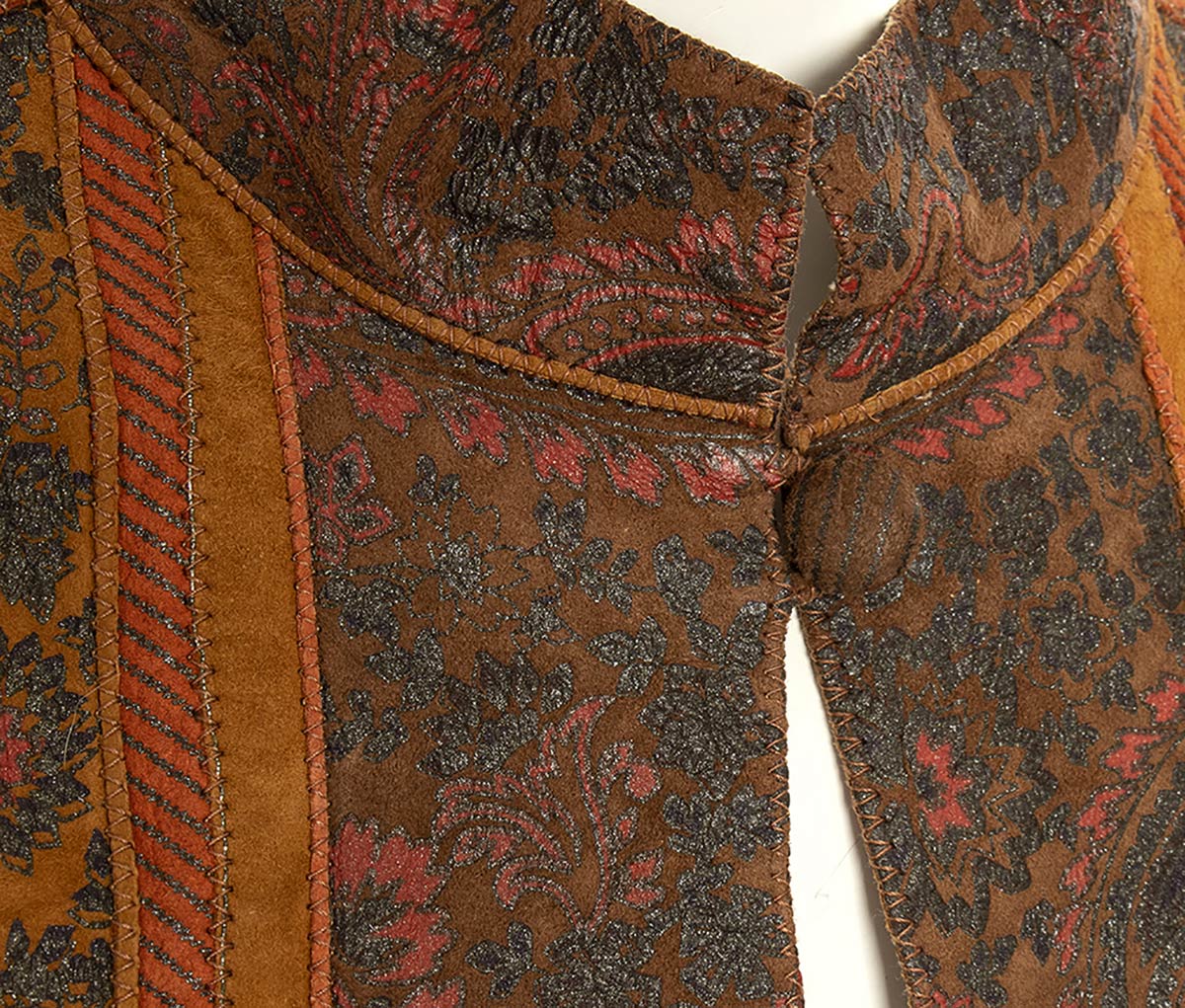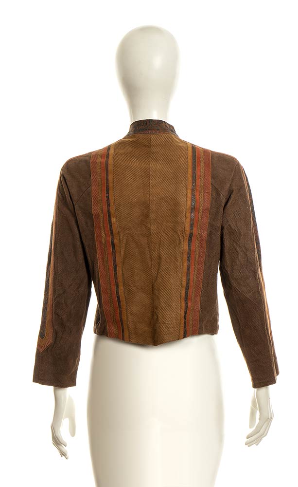 Giacca lavorazione della pelle patchwork e stampata in gradazione di marroni e color ruggine