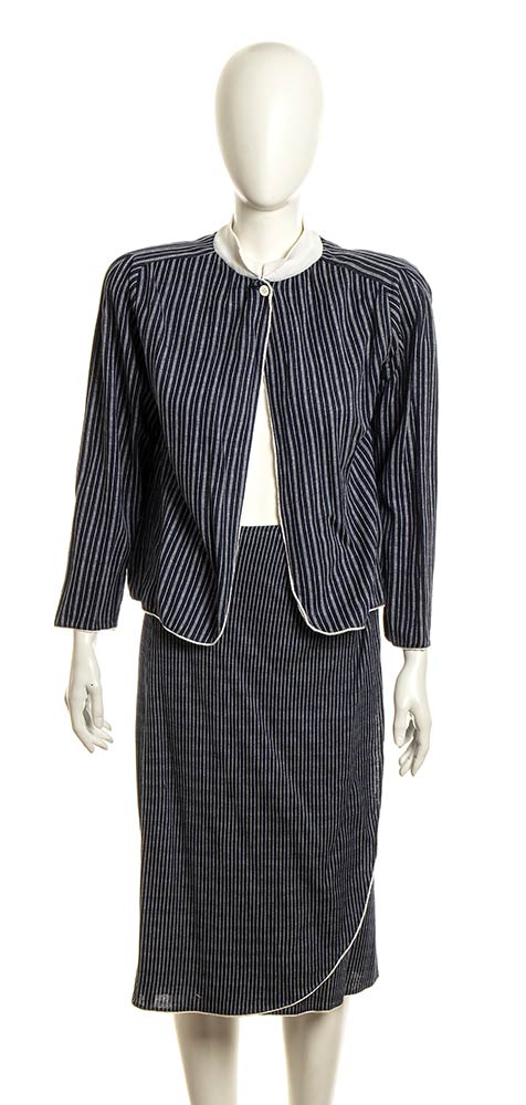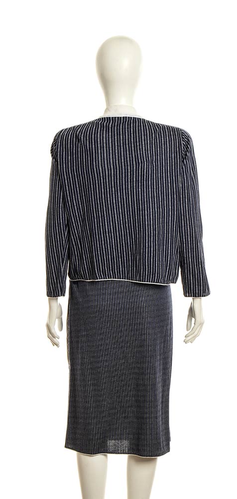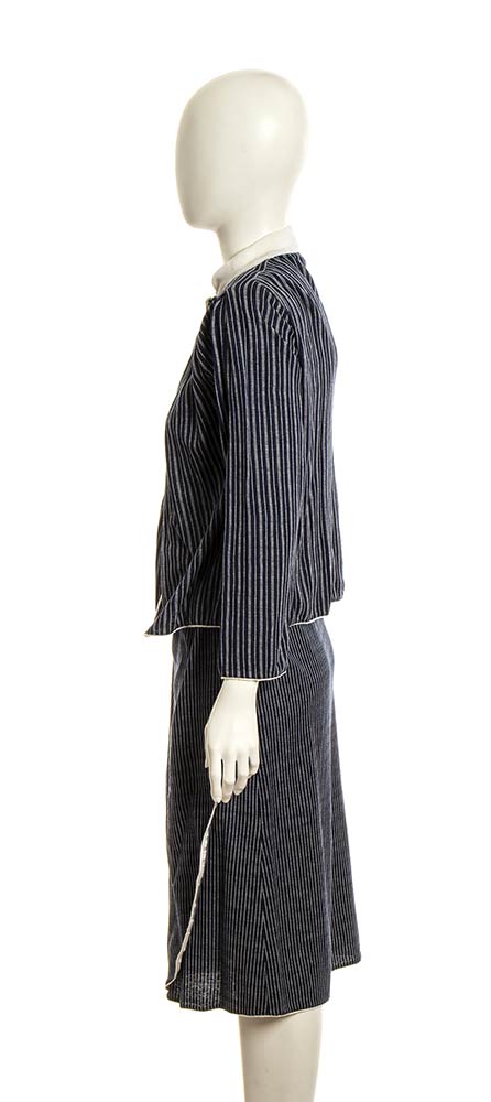 Completo (gonna e giacca) in lana a righe blu e bianca