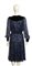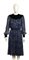 Abito in georgette blu, dettagli in lurex, collo e polsi in velluto nero