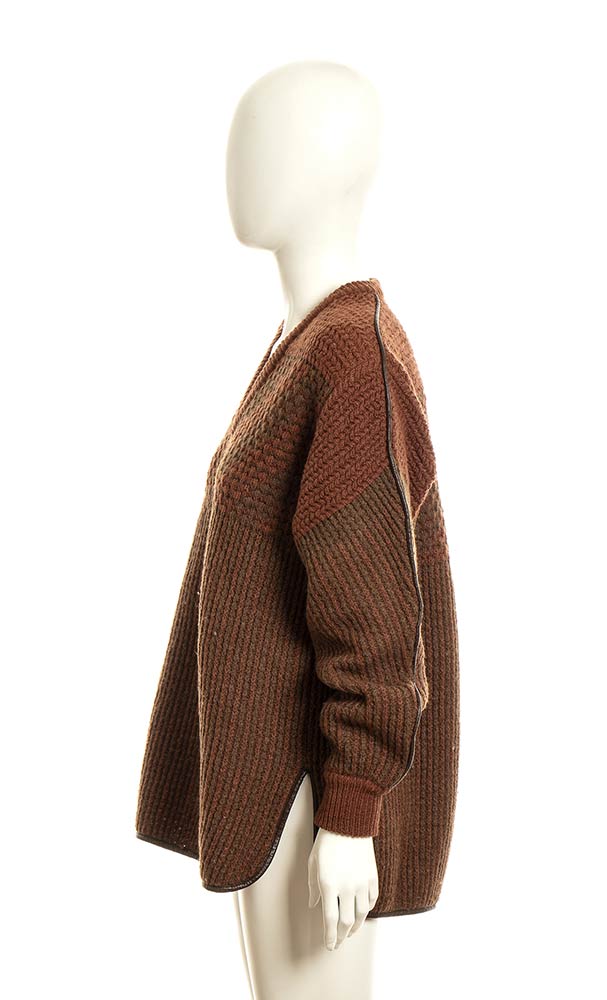Maglione in lana color ruggine, dettagli in pelle marrone