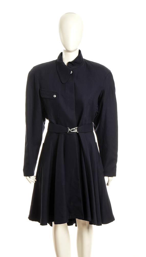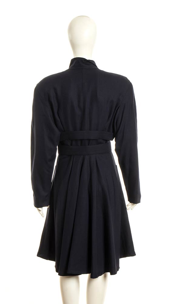 Soprabito in tessuto misto lana/viscosa blu scuro, cintura