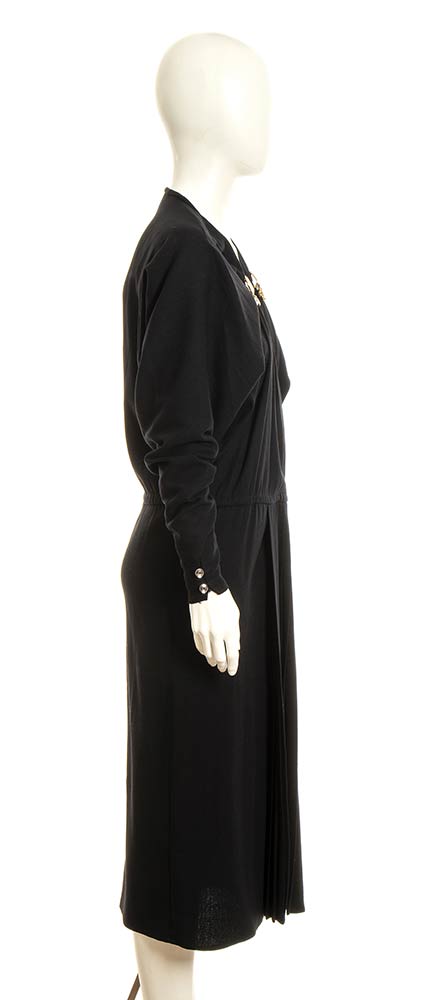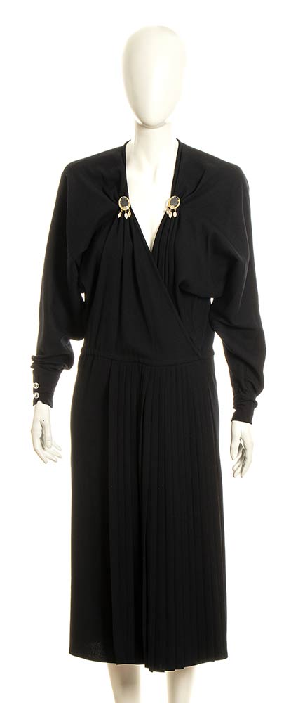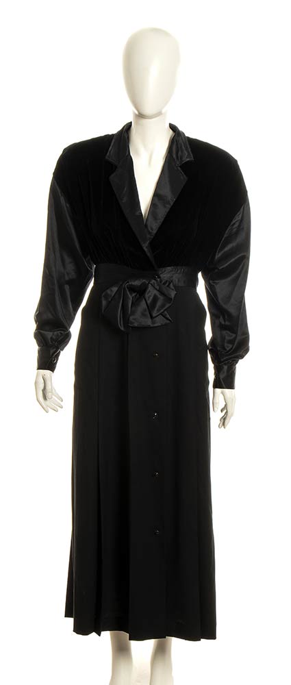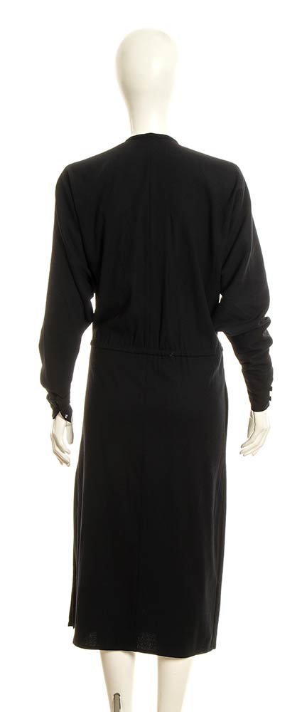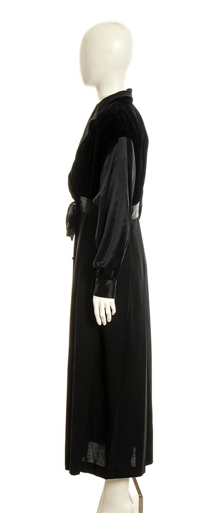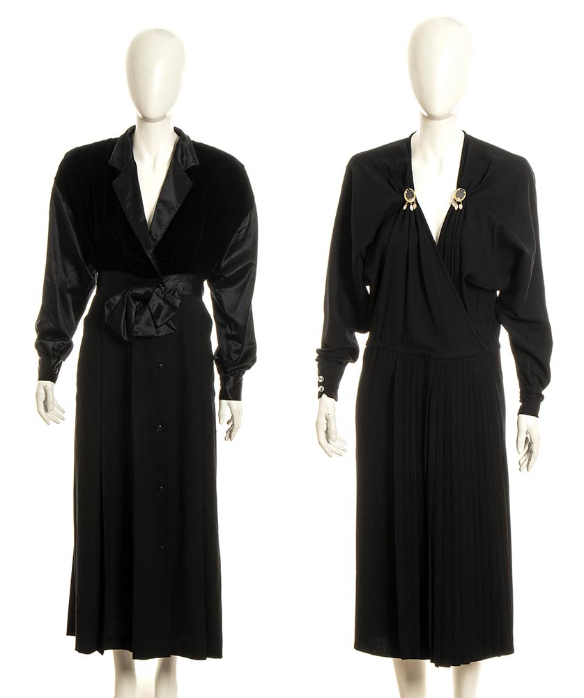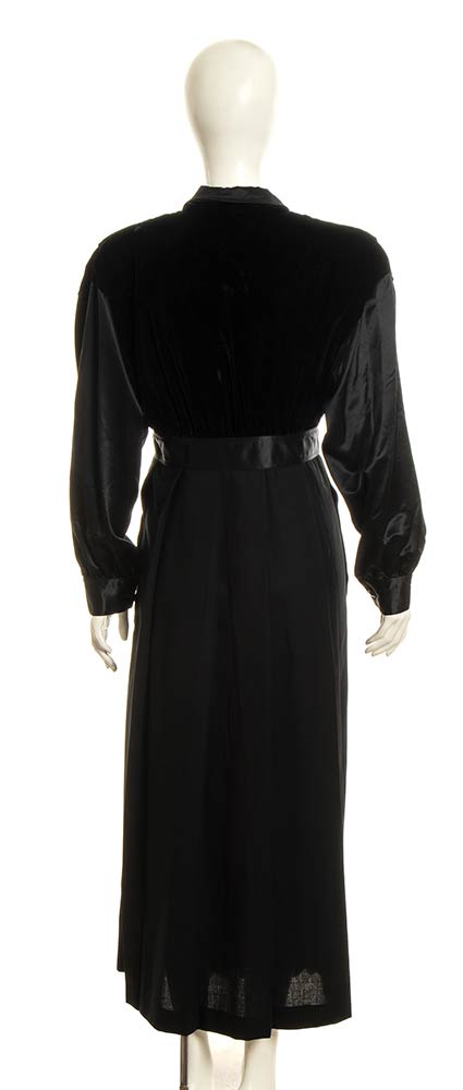 Lotto di 2 abiti : abito in velluto e crepe nero, dettagli in satin, abito in crepe di lana nero