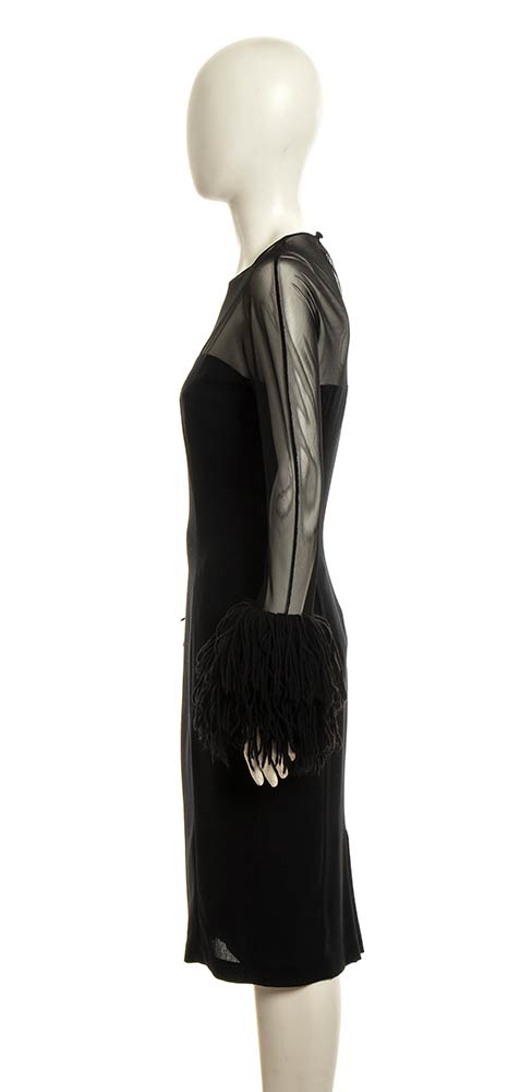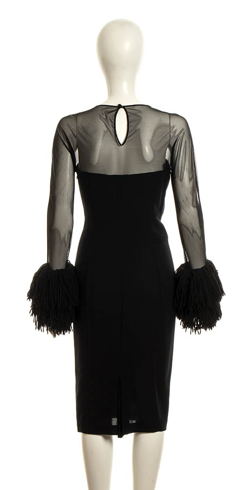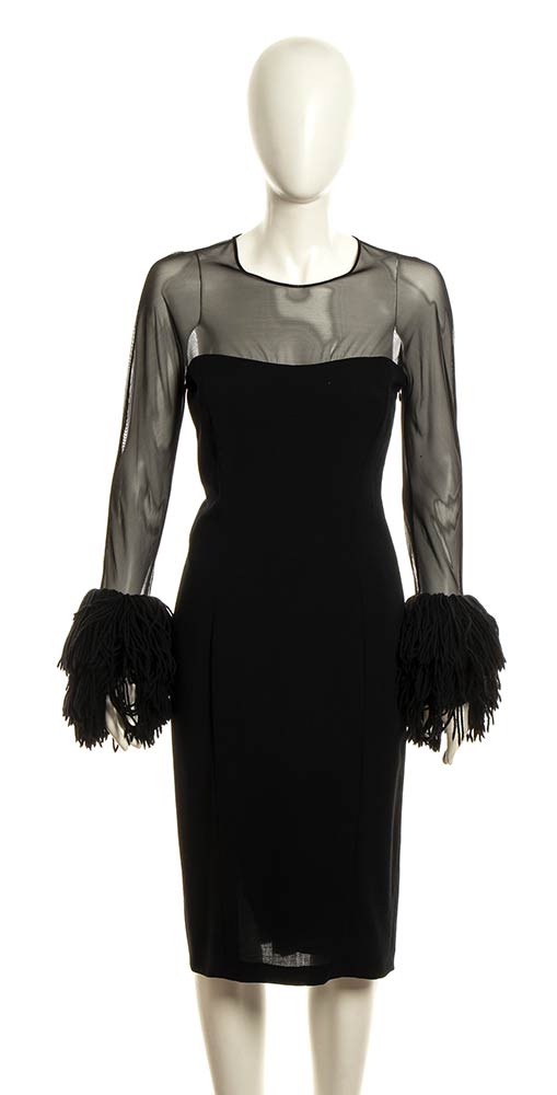 Abito in tessuto di lana nero, nylon nero, polsi in filato di lana nera