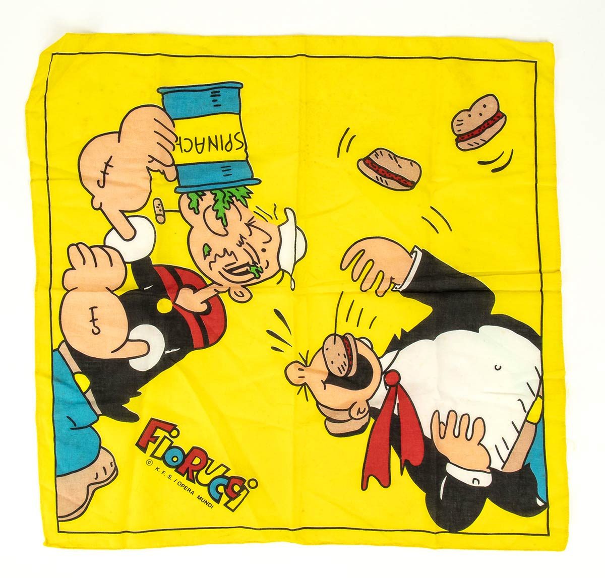 Lotto di 2 articoli : t-shirt in cotone a righe e fazzoletto in cotone tema Braccio di Ferro