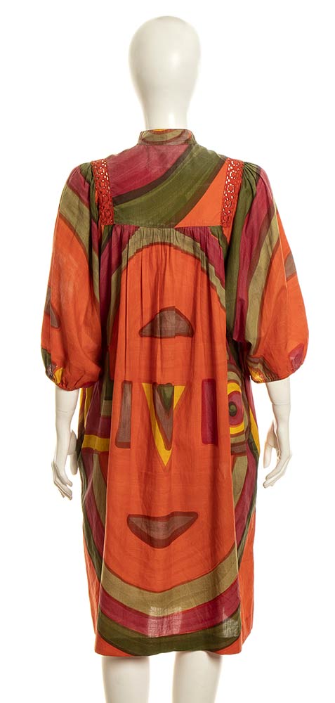 Abito in cotone multicolore, dettagli in maglia all'uncinetto