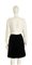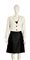 Completo in velluto nero, seta jacquard nera con pattern a pois, bolero in velluto bianco