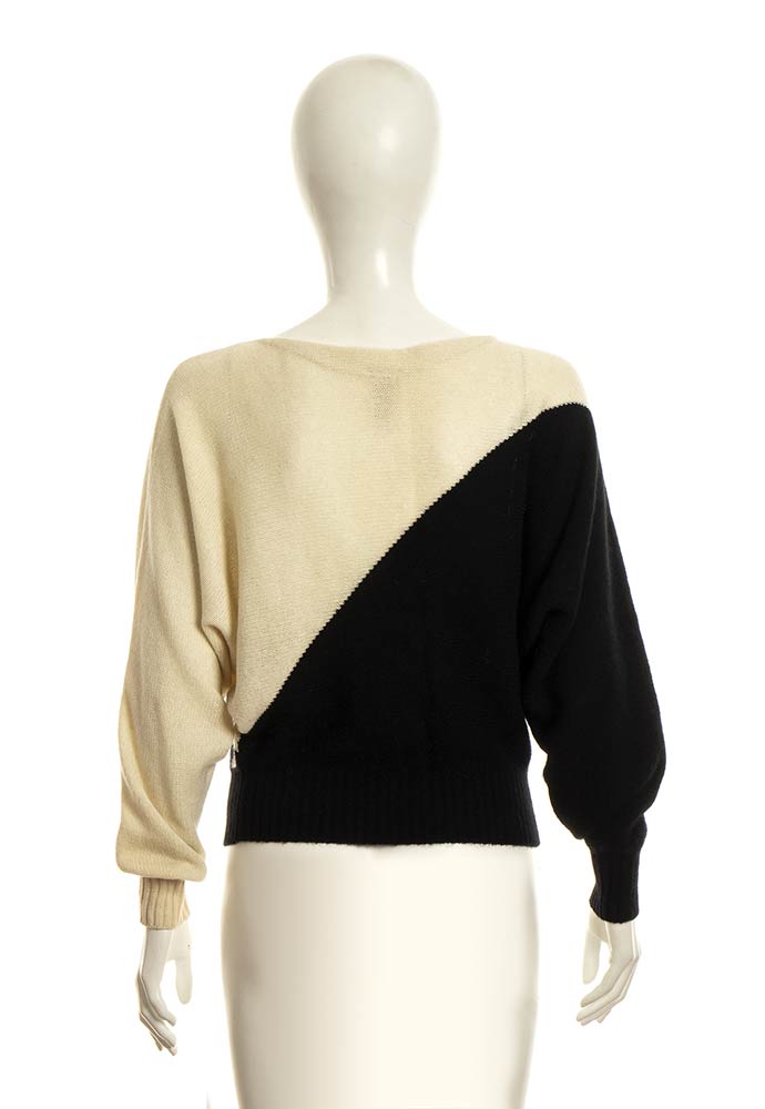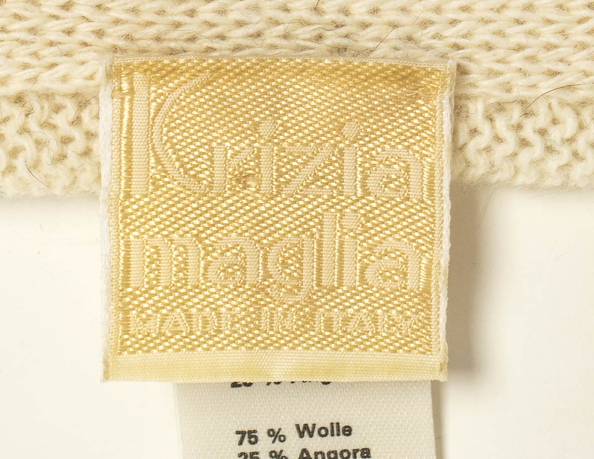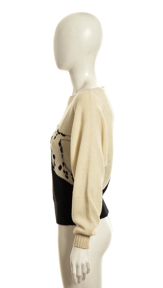 Maglione in tessuto misto angora/mohair color avorio e nero, motivo tricot con cane dalmata