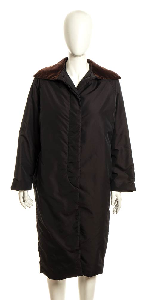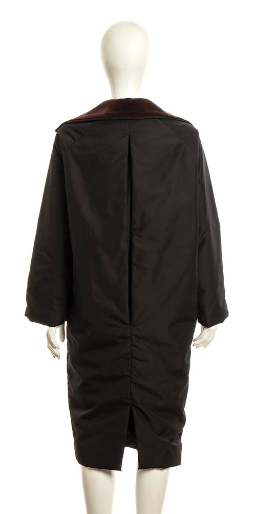Cappotto in tessuto impermeabile marrone scuro, collo in velluto marrone