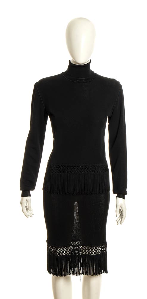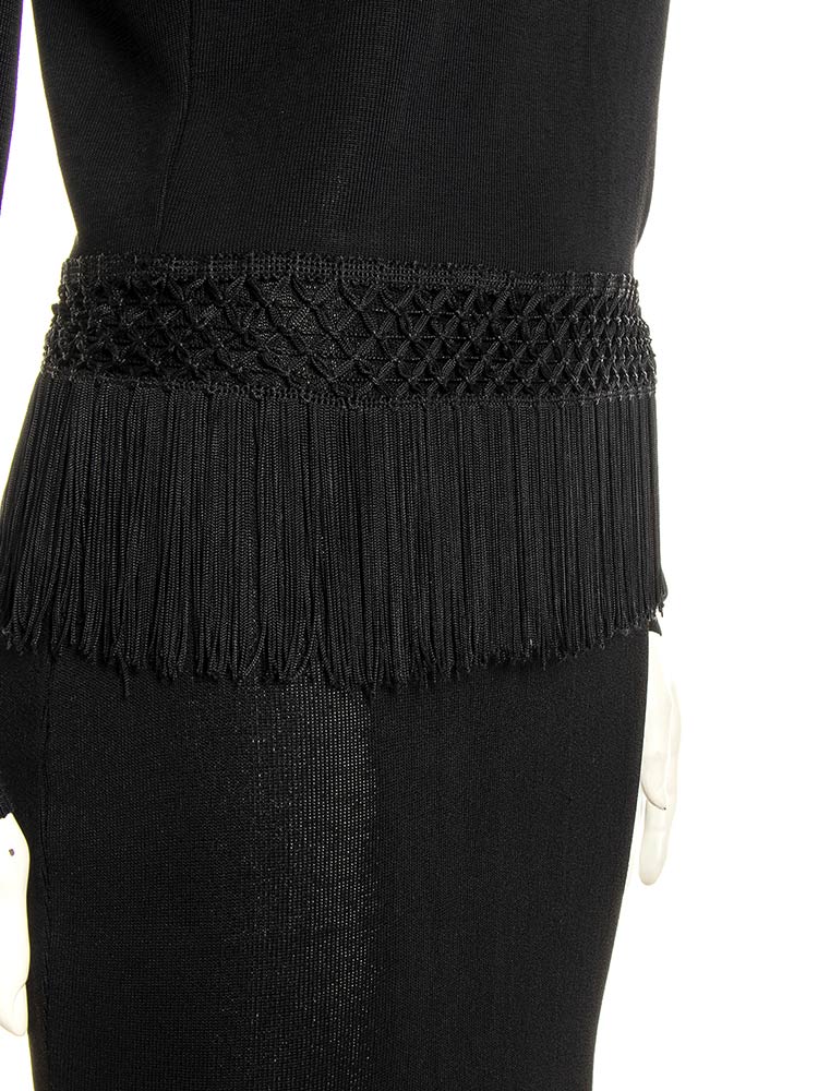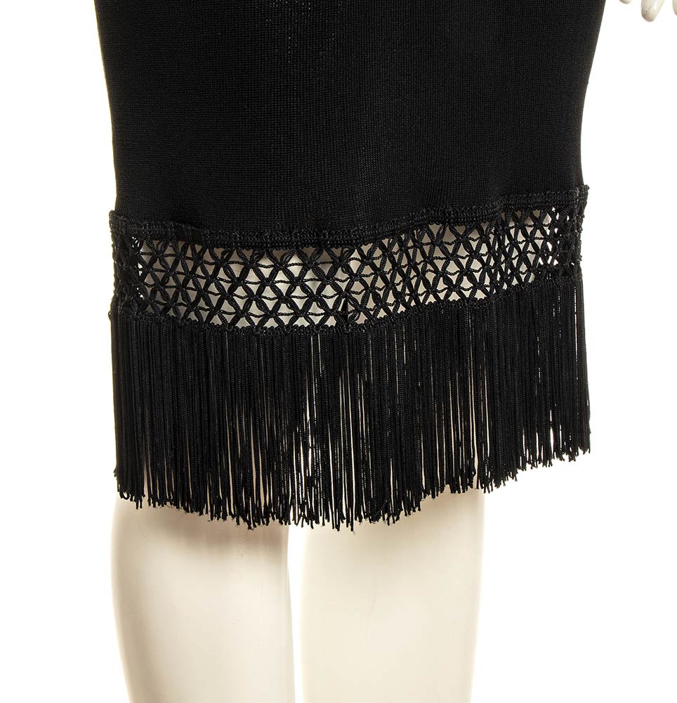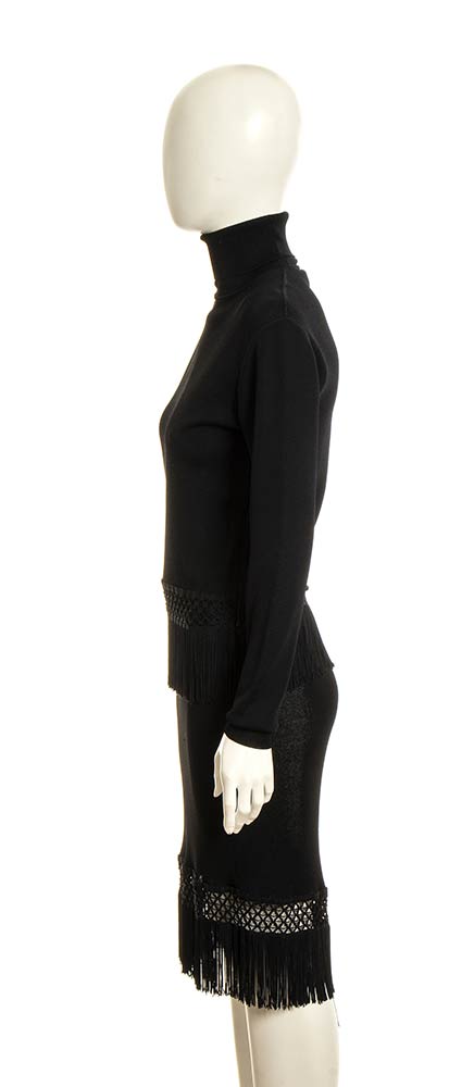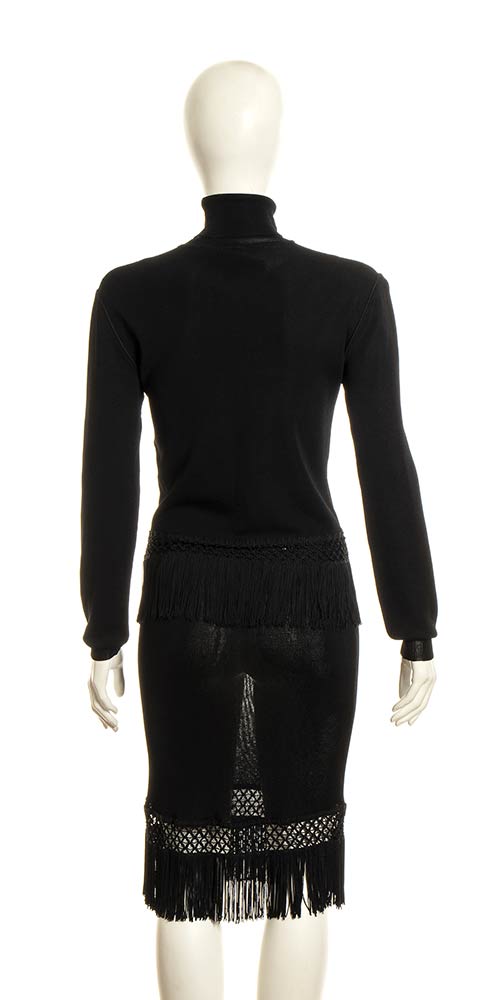 Completo (maglia e gonna) in maglia di viscosa nera con frange