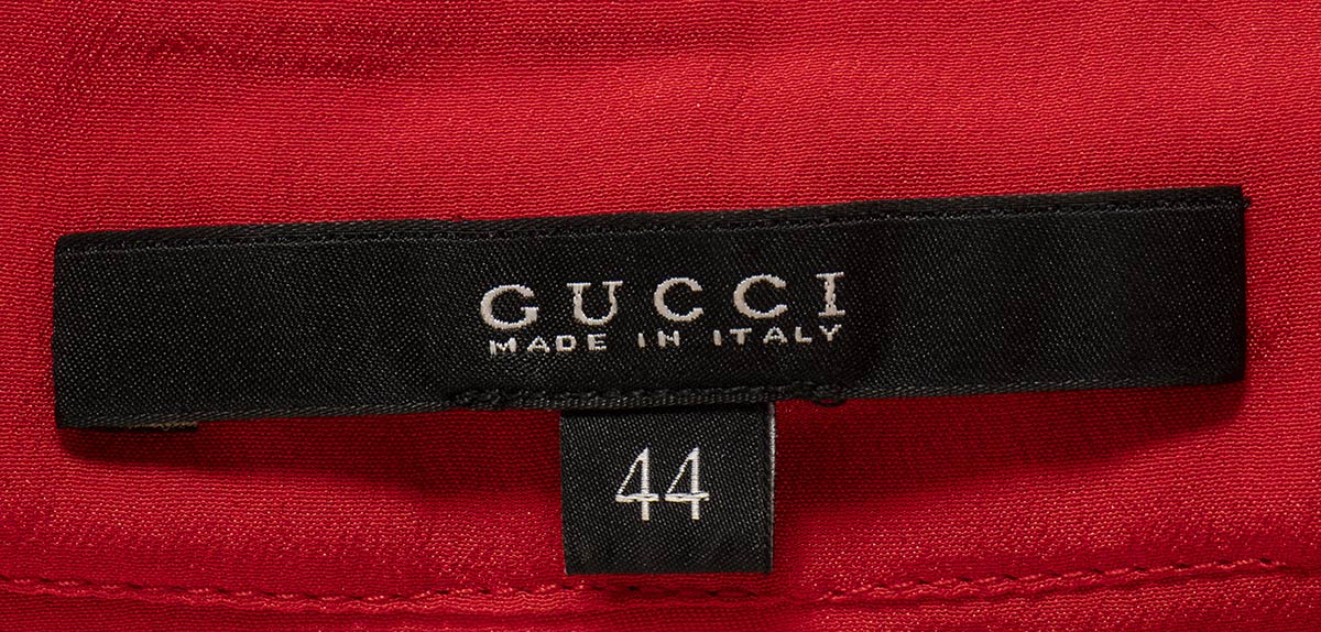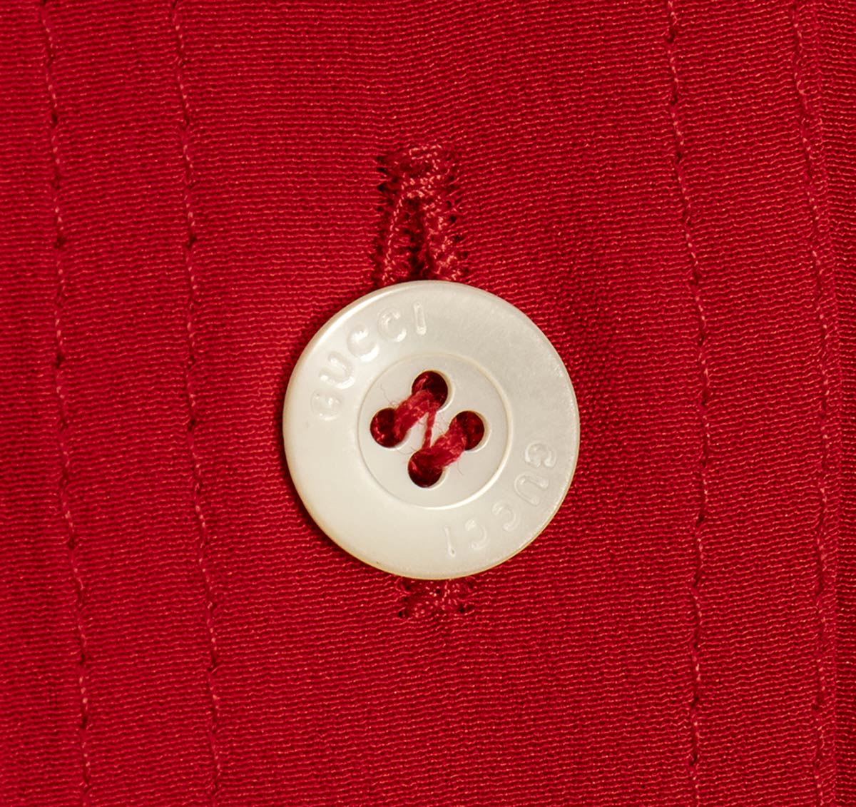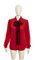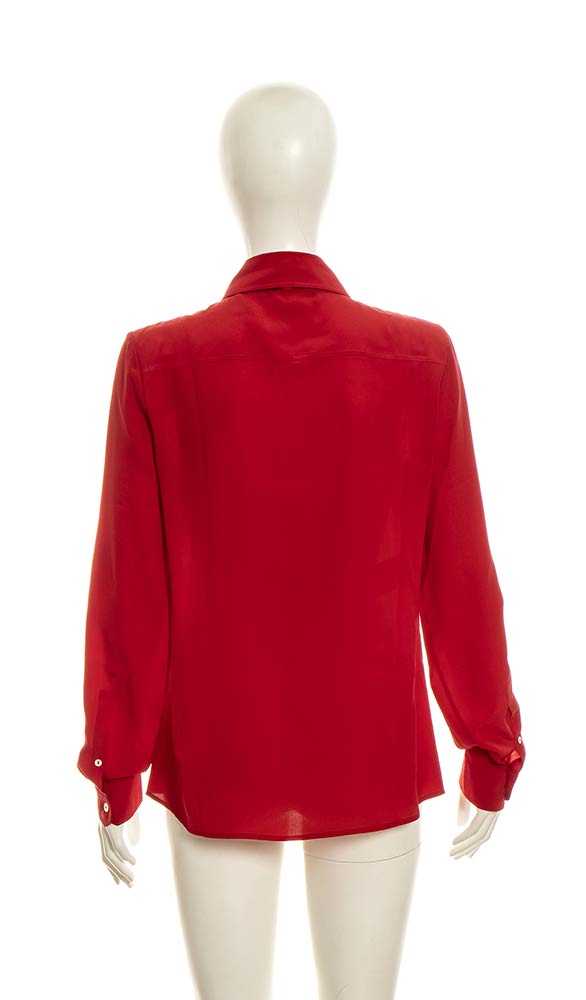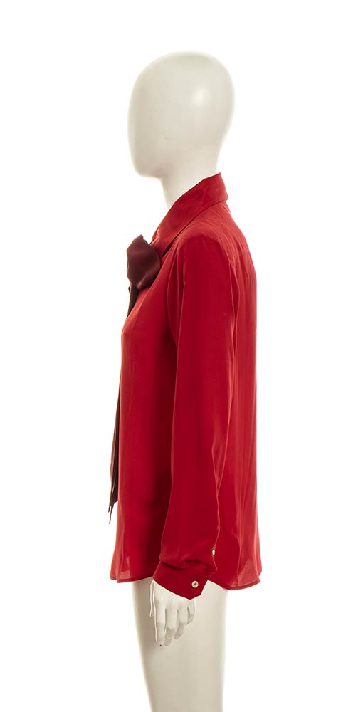 Camicia in seta rossa, inserto in seta bordeaux per il collo a sciarpa