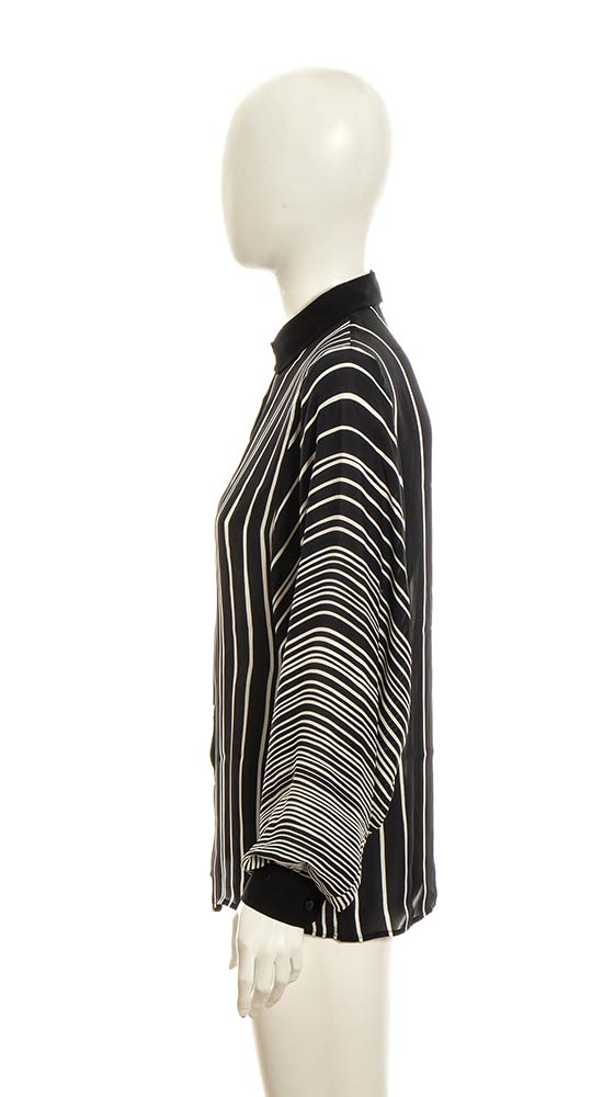 Camicia in seta a righe bianche e nere