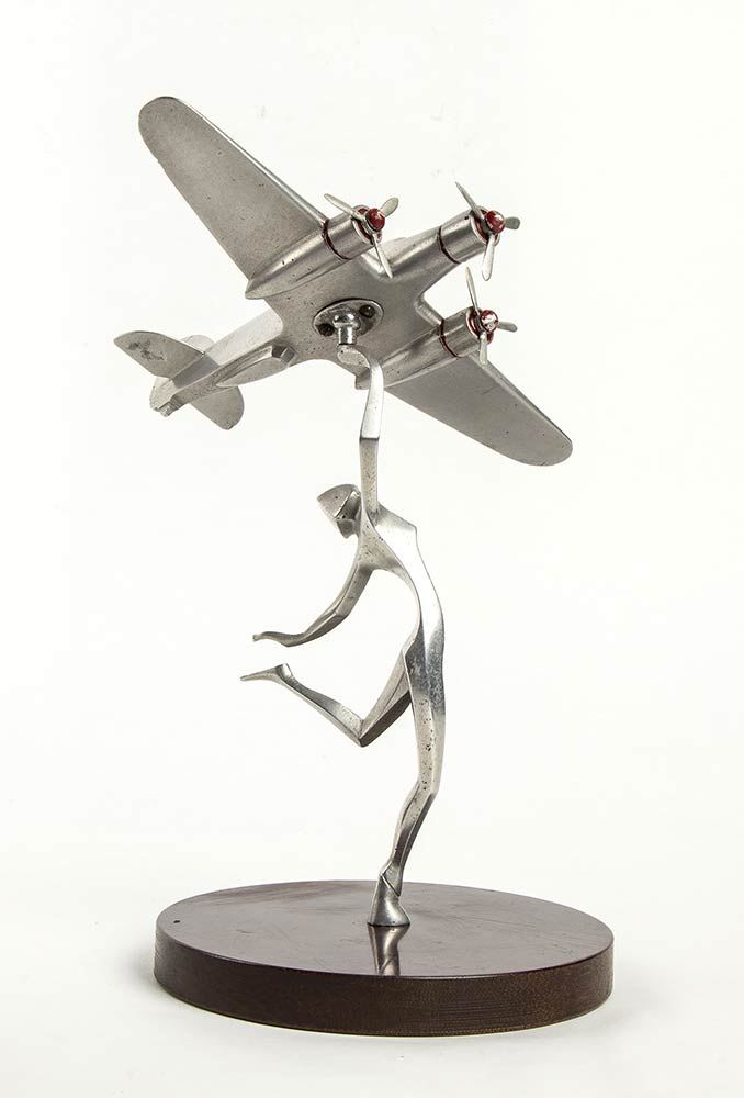 Originale dell'epoca, non moderno. Dimensioni dell'aereo cm.20x16, altezza della donnina cm.25. Insieme in buono stato.