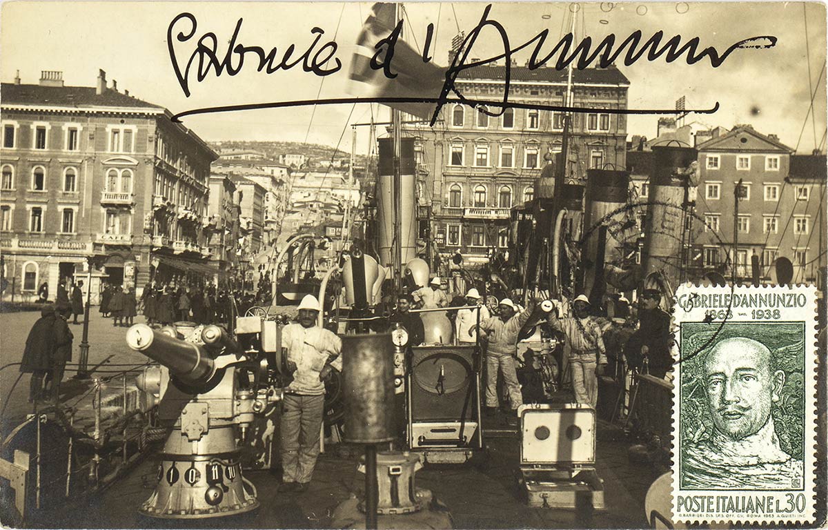 Cartolina fotografica Fiume con autografo d'Annunzio