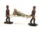 Due soldatini infermieri, con barella in metallo e soldato ferito. Anteguerra, in composizione/pasta. Mancanze, ed evidenti tracce d'uso, condizioni discrete. Altezza circa cm.7