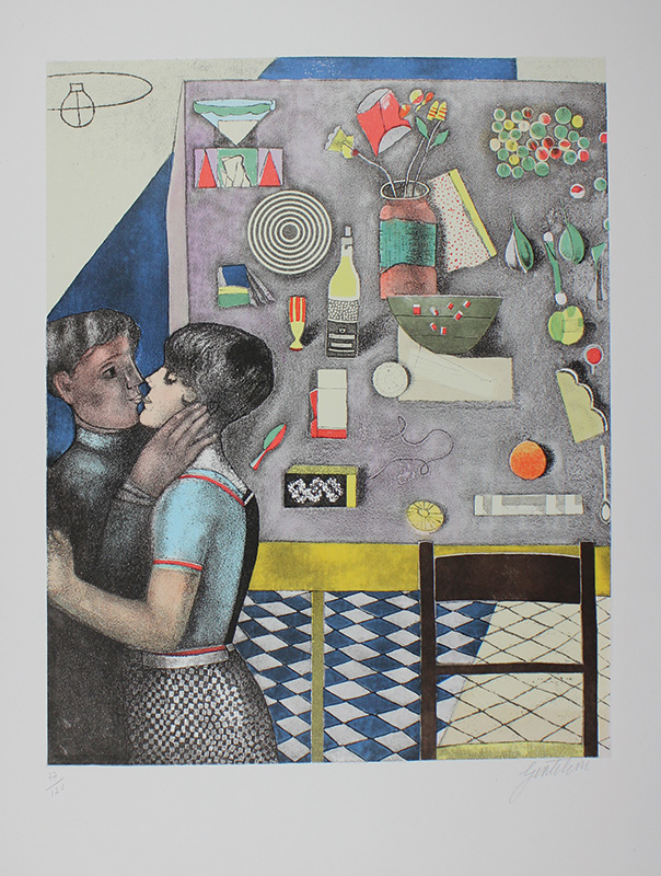 Gentilini Franco Innamorati serigrafia su carta, cm 79x59,5, es. 77/120 firmata in basso a destra