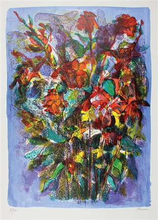 Terruso Saverio Fiori litografia su carta, cm 70x50, es. 39/100 firmata in basso a destra