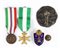 lotto di due medaglie post belliche, un distintivo sovietico, una grande medaglia in fusione delle camicie nere in Africa ed una scatola in marocchino verde con impressioni in oro.