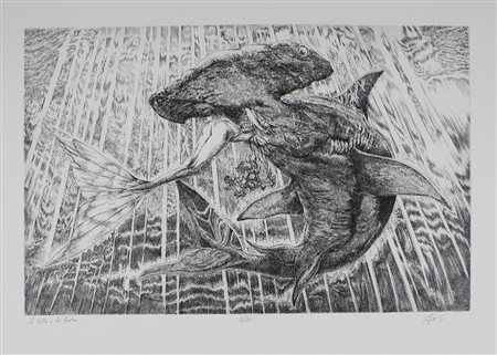 Perfetti Luciano La bella e la bestia acquaforte su carta, cm. 50x70, es....