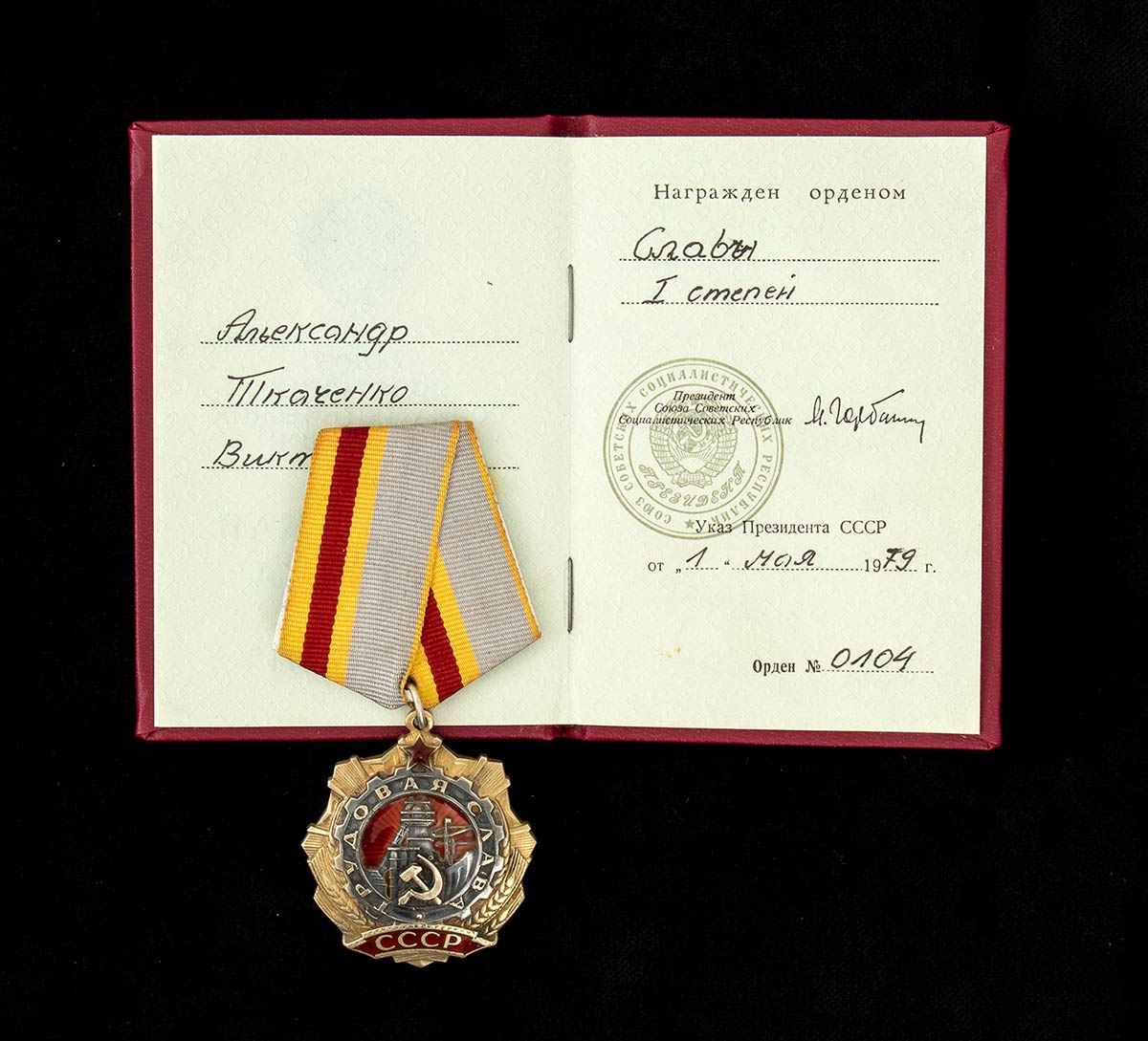 URSS Ordine della gloria del lavoro, I classe con documento