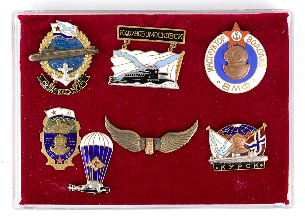 Sei distintivi di specialità della marina sovietica e russa, seconda metà XX sec.