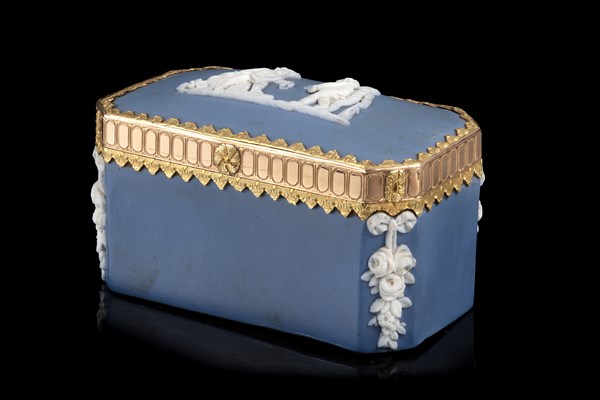 A Wedgwood porcelain box with 9K gold mounts (cm 7,6x3,9x4 ca)