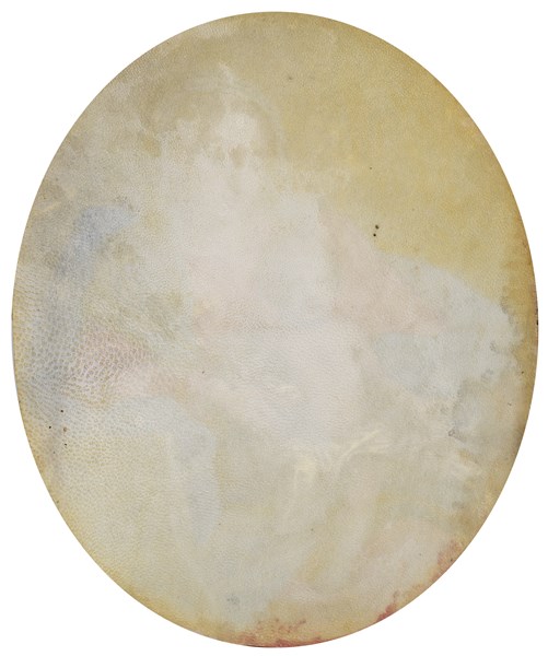 Tempera su pergamena ovale, cm 18,2x15,1