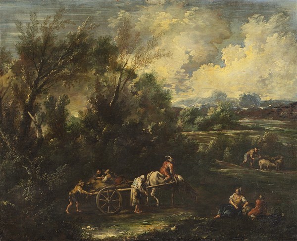 Seguace lombardo di Alessandro Magnasco, secolo XVIII Paesaggio con pastori, a