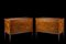 Coppia di cassettoni lastronati, intarsiati e filettati in legni vari. Fronte a