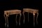 Coppia di tavoli da gioco di forma mossa lastronati in noce, filettati e intarsiati in legno chiaro e bois de rose