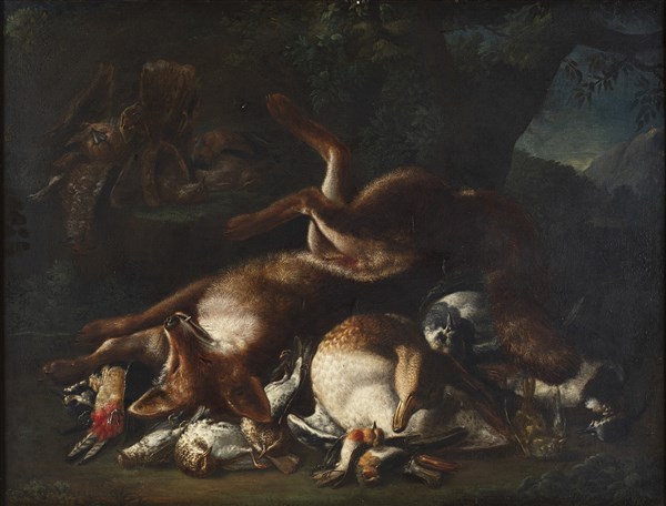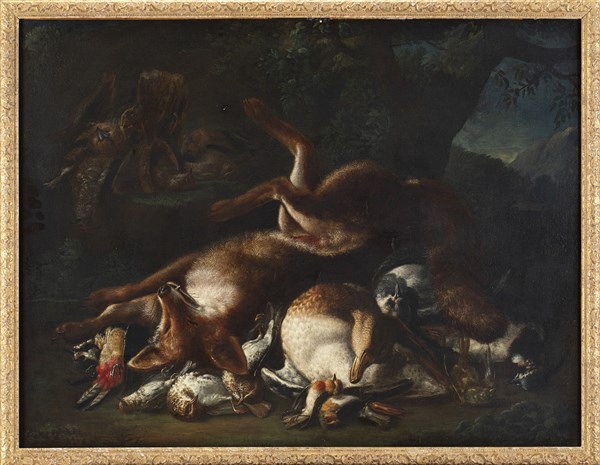 Alessandro Gori Cacciagione Olio su tela, cm 74x97,5 Firmato in basso "Alessandr