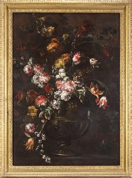 Margherita Caffi Vaso di fiori Olio su tela, cm 134,5x94,5 In cornice (difetti e