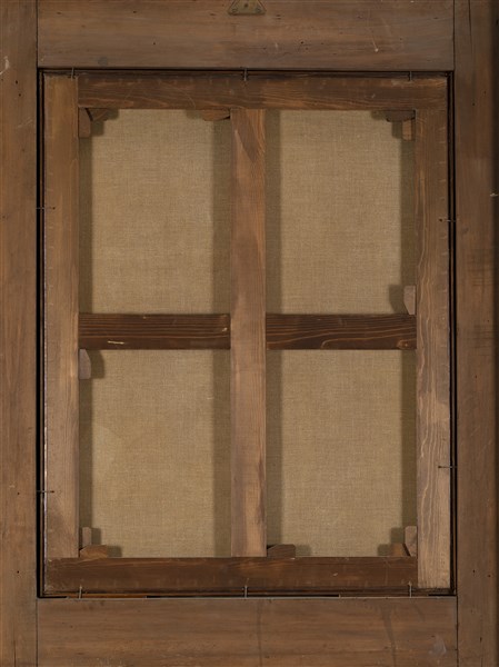 In cornice intagliata e dorata a racemi e festoni (restauri)