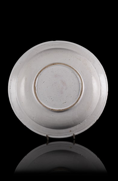 Manifattura di Deruta, fine secolo XVI. Piatto in maiolica smaltata bianca, dec