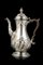 Caffettiera in argento a corpo piriforme sbalzato e cesellato a tralci fioriti.