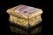 Scatola rettangolare in metallo dorato e cesellato con coperchio in agata. Seco
