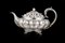 Teiera in argento a corpo bombato e costolato sbalzato a foglie e motivi fiorit