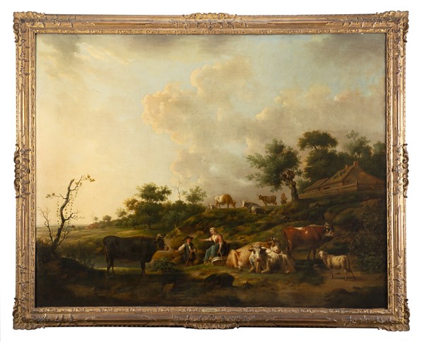 Henri Joseph Antonissen Paesaggio con pastori e armenti Olio su tela, cm 103x131