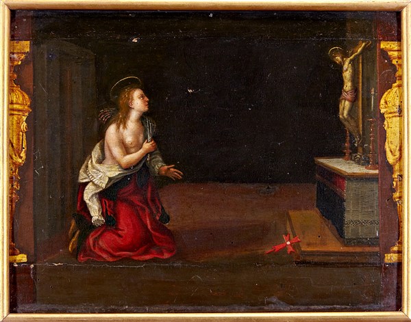 Scuola toscana della fine del secolo XVI Maddalena penitente in adorazione del