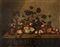 Scuola del secolo XVIII Composizione con frutta, pane, ostriche e fiasca Olio