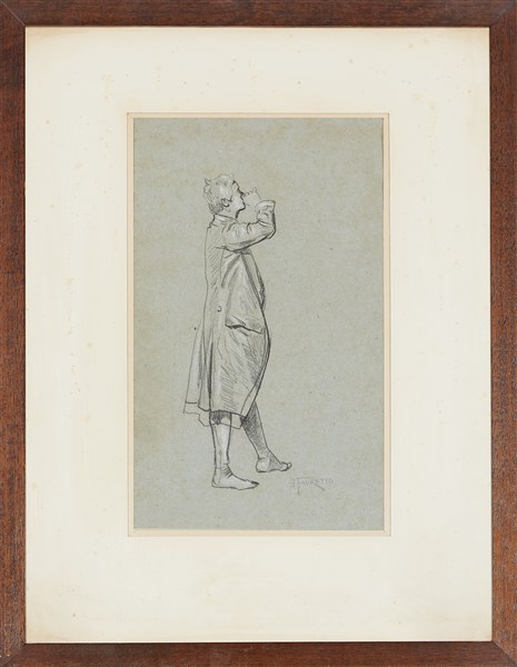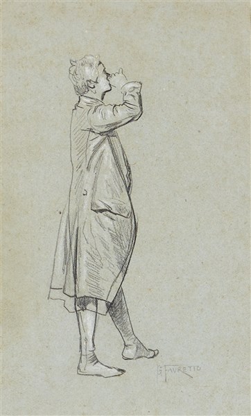 Giacomo Favretto Figura virile stante Carboncino e rialzi a gessetto bianco su c