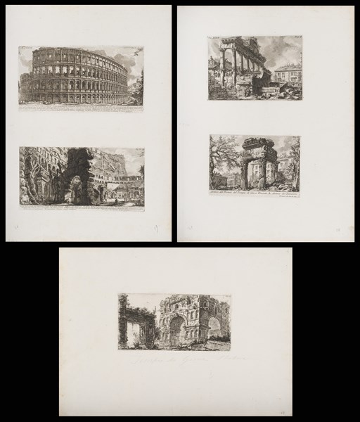 Tempio di Giano; Avanzo del Tempio della Concordia; Avanzo del pronao del Tempio di Giove Tonante; Veduta dell'Anfiteatro Flavio detto il Colosseo; Veduta degli Avanzi dell'Anfiteatro Flavio dalla parte interna