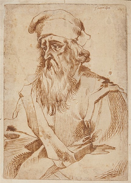 Artista dell'Italia centrale del secolo XVII Busto d'uomo barbuto Penna e inc