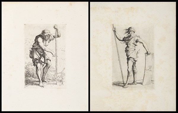 Salvator Rosa Paesano in piedi con bastone; Soldato in piedi con bastone e scudo