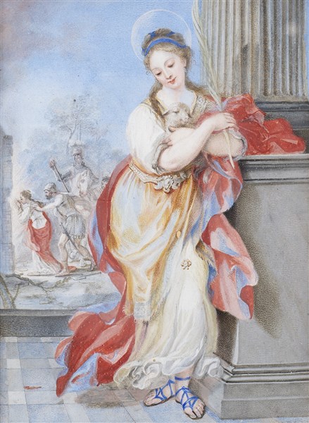 Scuola romana dell'inizio del secolo XVIII Sant'Agnese Tempera su pergamena, c