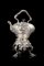 Samovar con sostegno e fornelletto in argento sbalzato e cesellato a girali e v
