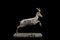 An antique bronze sculpture representing a deer (cm 40x45,5x9) On a marble base (defects)