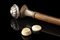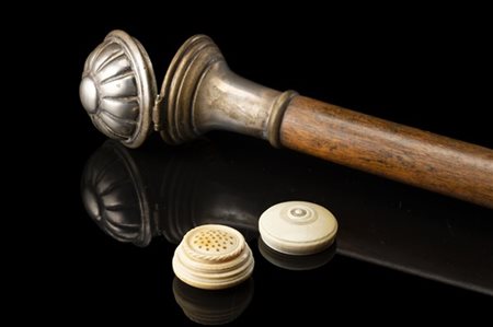 Bastone in malacca con presa in argento titolo 800 a scatola contenente un port