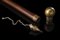 Bastone da passeggio in legno con pomolo in ottone di forma sferica celante peso a piombo. Puntale in metallo. Secolo XIX (L. cm 95)