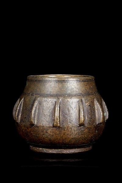 Lot 583 | Antico mortaio in bronzo decorato in rilievo (h. cm 8,5 x d. max cm 10) (difett