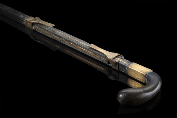 Lot 643 | Bastone da calzolaio in ebano a sezione quadrata con centimetro e movimento per